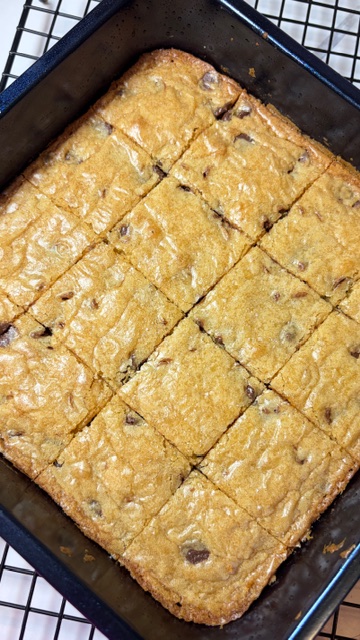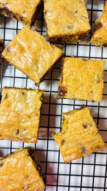 - Let the blondies cool before cutting so they set properly.