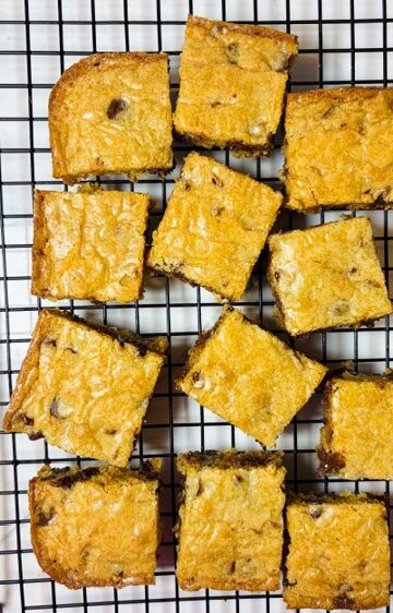 These bars are soft in the center, perfectly golden around the edges, and have that irresistible crackly top that makes you want to grab a square the second they come out of the pan.
